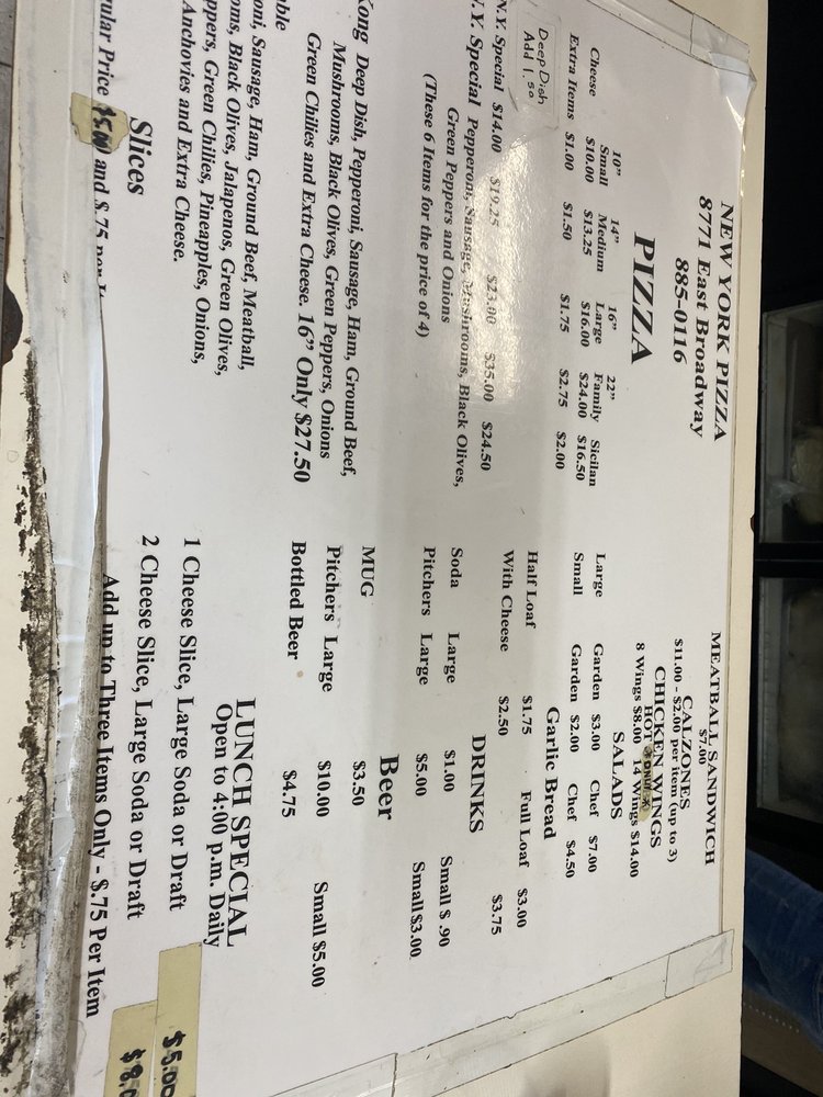 New York Pizza Menu (2025 Update)